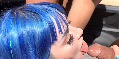 Ravishing babes are fucking with horny guys outside