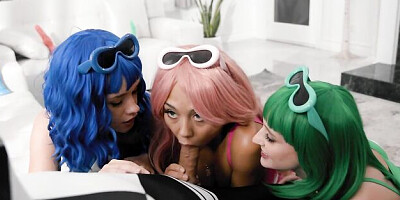 Laney Grey and Caitlin Bell are enjoying FFM hard sex